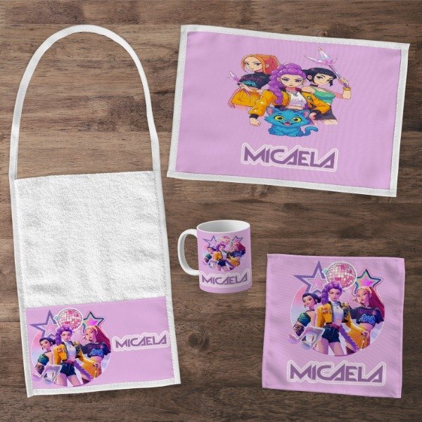 El set contiene taza, servilleta, mantel toalla y cucharita, se toman con 1 semana minino de anticipacion, con el diseño que prefieras